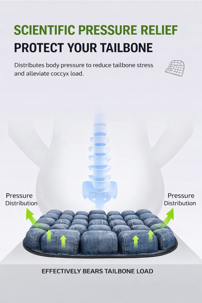 Using a pressure-relief solution like AJ air cushion helps distribute body weight evenly, reduce pressure points, and support healthier sitting for everyday comfort.