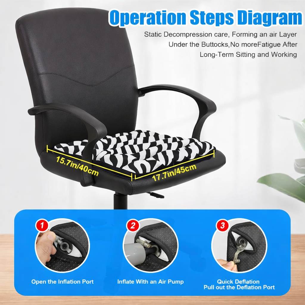 Long hours of sitting are now part of everyday work life. Whether youโ€™re in a corporate office, a home workspace, or a creative studio, prolonged sitting can quietly lead to pressure buildup, fatigue, and discomfort. The Zebra-Inspired Air Cushion is designed to change how sitting feelsโ€”by combining ergonomic air-cell support with a bold, modern aesthetic.