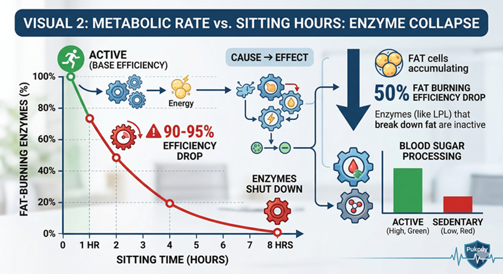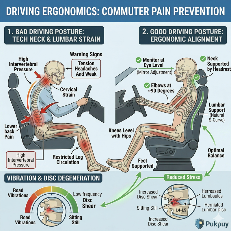 - Disc Compression: Prolonged “C-shape” sitting pushes the jelly-like center of your spinal discs (nucleus pulposus) outward. If the outer ring tears, it results in a herniated disc that can press against nerves, causing sciatica or radiating leg pain.