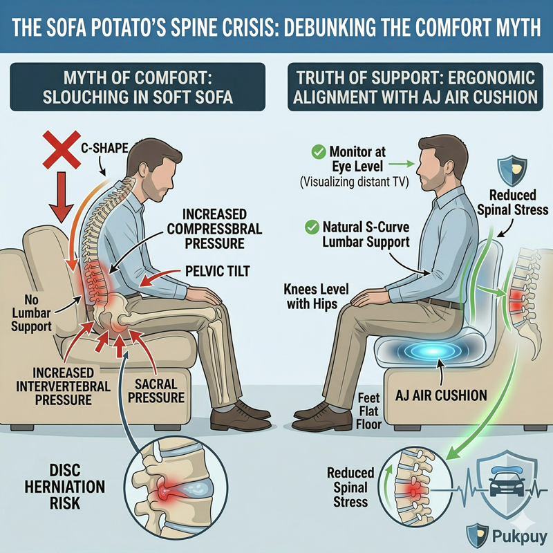 While a plush sofa feels like the ultimate reward after a long day, it is often a silent contributor to chronic musculoskeletal decay. Without proper support, your body defaults to a “C-shape” posture that creates a dangerous chain reaction from your lumbar spine to your lower limbs. At AJ Air Cushion, we specialize in patented air technology designed to transform these high-pressure surfaces into ergonomic sanctuaries.
