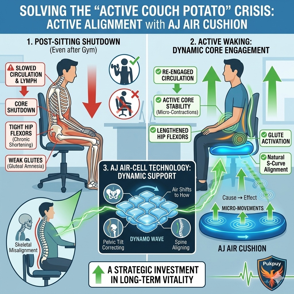 Even for those who hit the gym, the “Post-Sitting Shutdown” is real—circulation slows and hip flexors tighten after hours of immovability. By utilizing AJ Air Cushion’s air-cell technology, you engage in “micro-movements” while seated, keeping your core stable and your spine aligned in its natural S-curve. This is not just a cushion; it is a strategic investment in your long-term vitality.