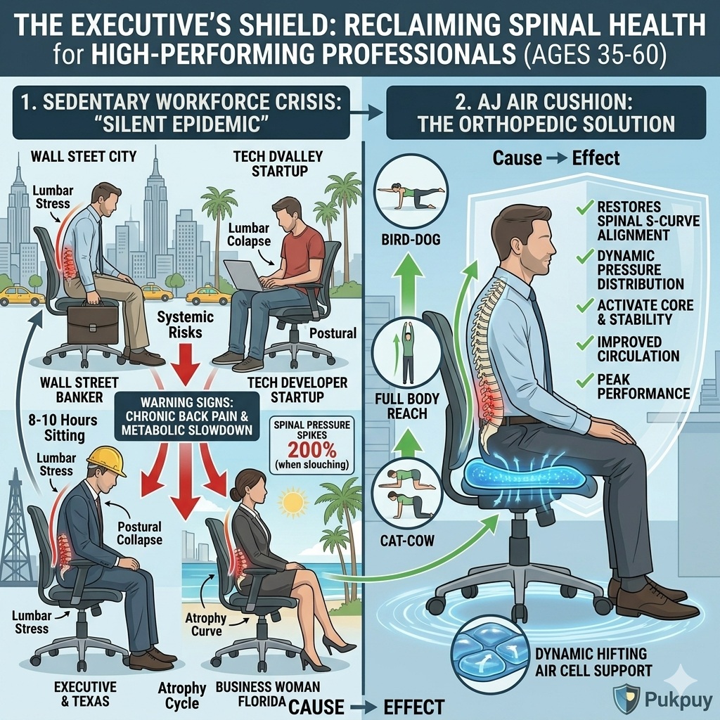 For the high-performing professional in New York’s financial districts, the tech hubs of California, the energy corridors of Texas, or the growing executive landscape of Florida, time is the most valuable asset. However, 8 to 10 hours of sedentary work can lead to a “silent epidemic” of chronic back pain and metabolic slowdown. At AJ Air Cushion, we provide the ultimate orthopedic solution for the 35–60 age demographic who refuse to let physical discomfort compromise their peak performance.